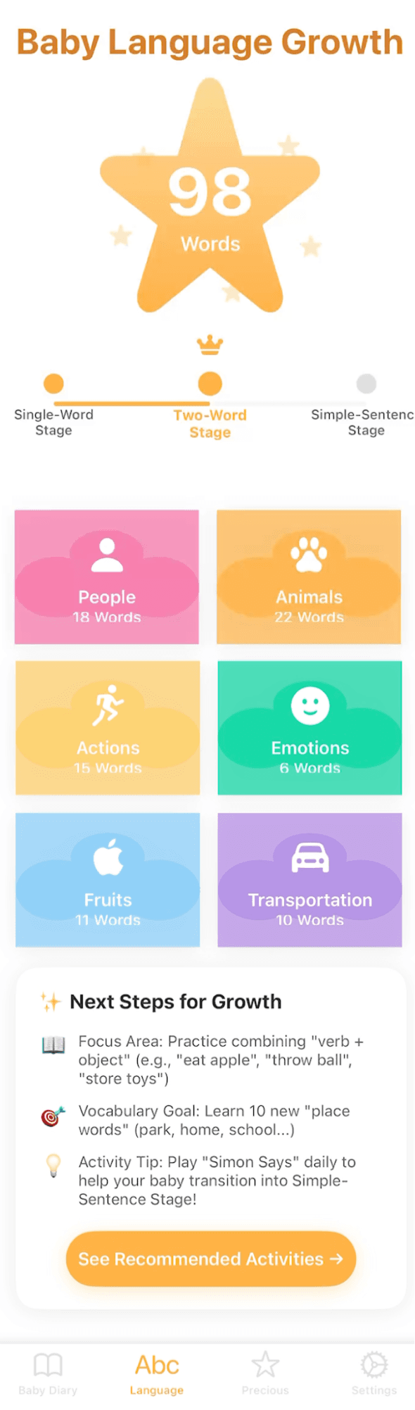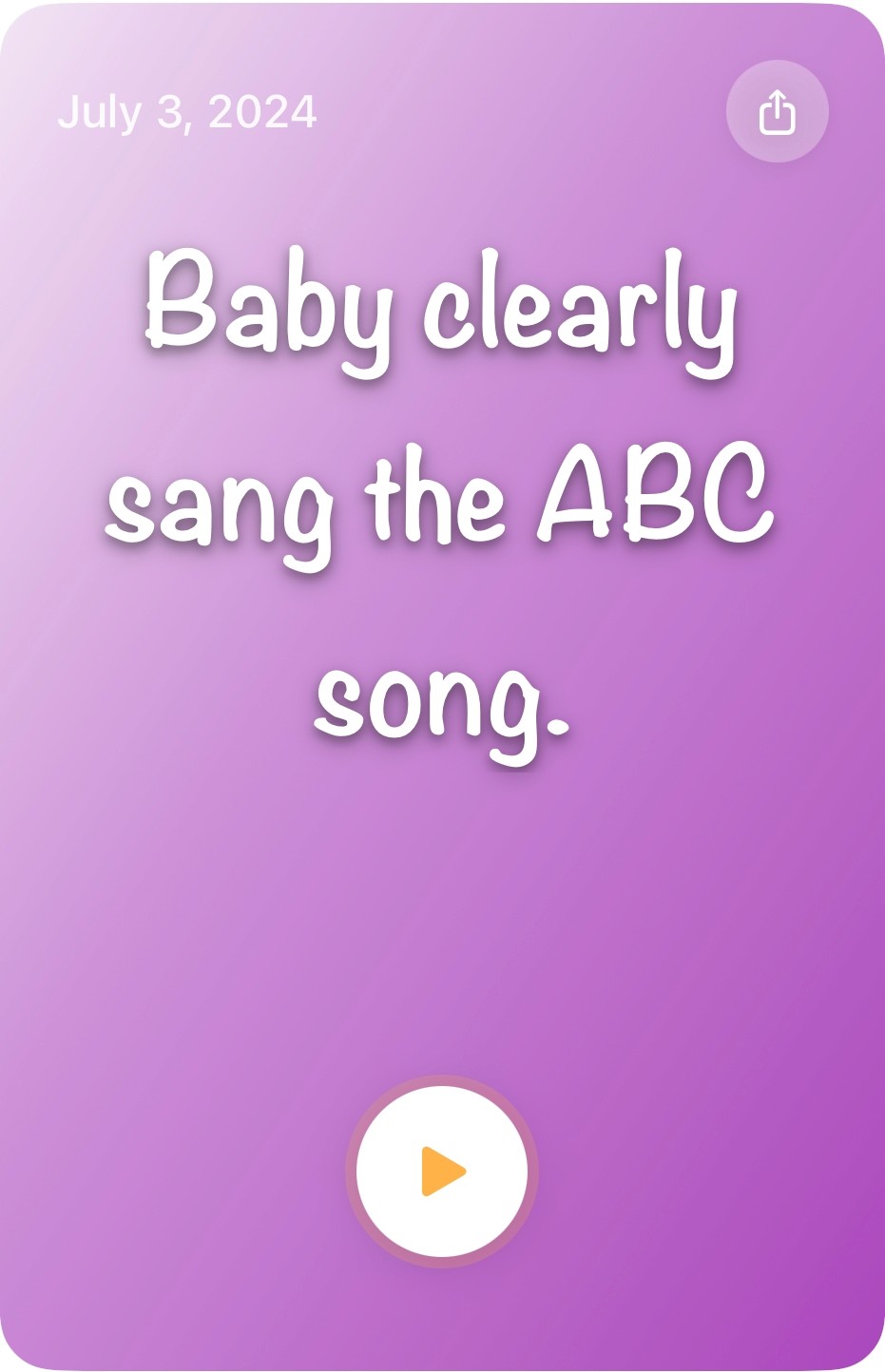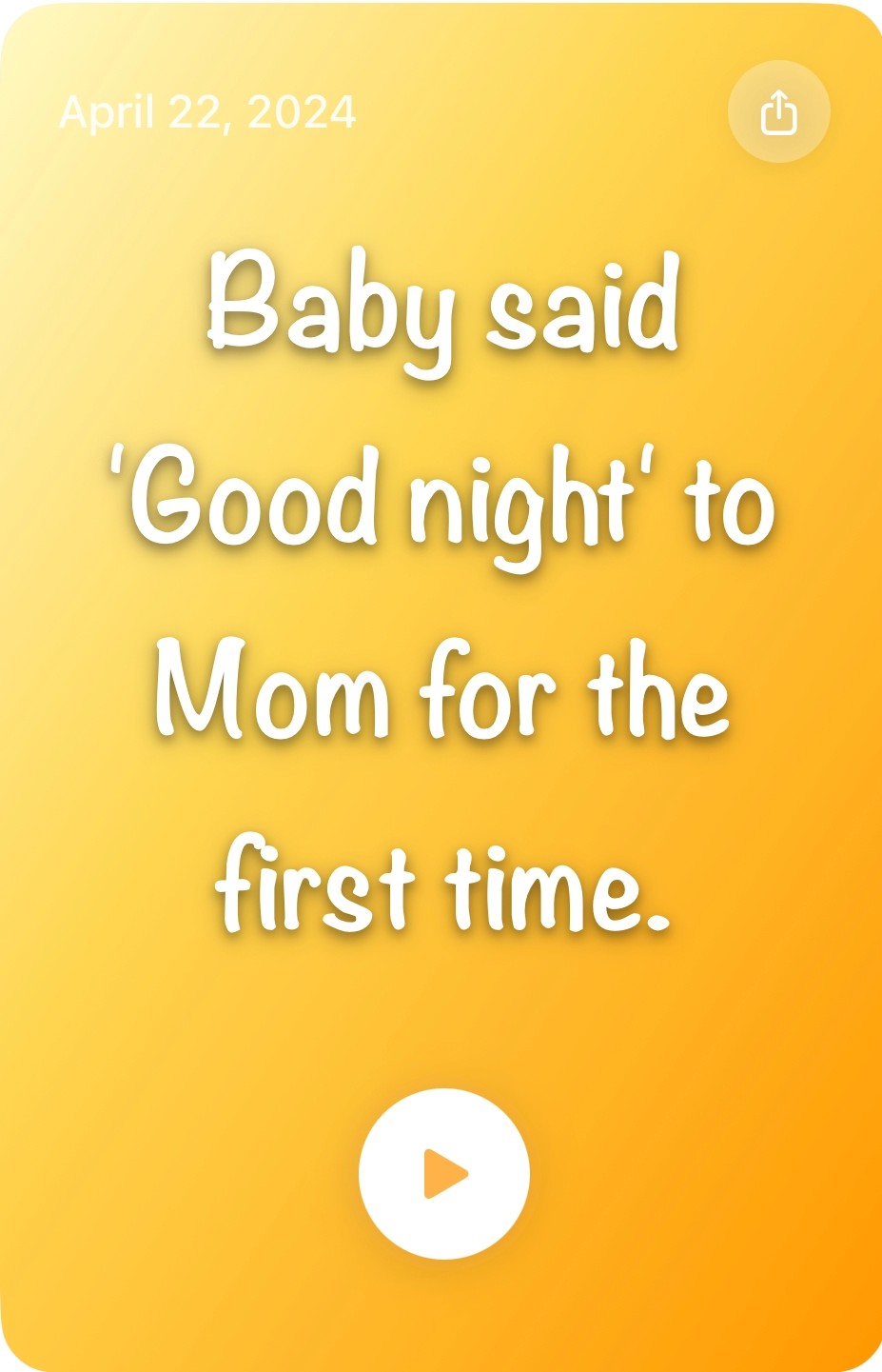 Some moments deserve to be kept forever — not just the big “firsts,” but every sweet sound, tiny achievement, and unexpectedly magical moment in between. LingoBaby automatically captures milestone moments throughout the day, and you can also bookmark your own favorites with one tap.